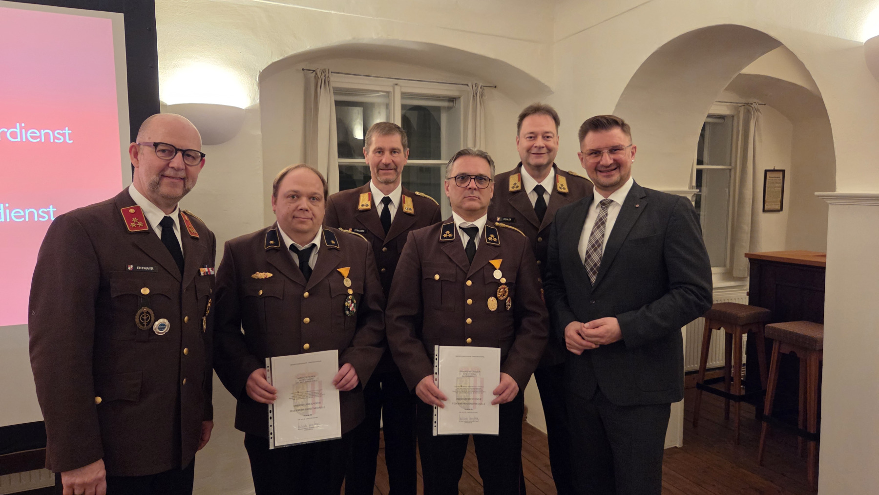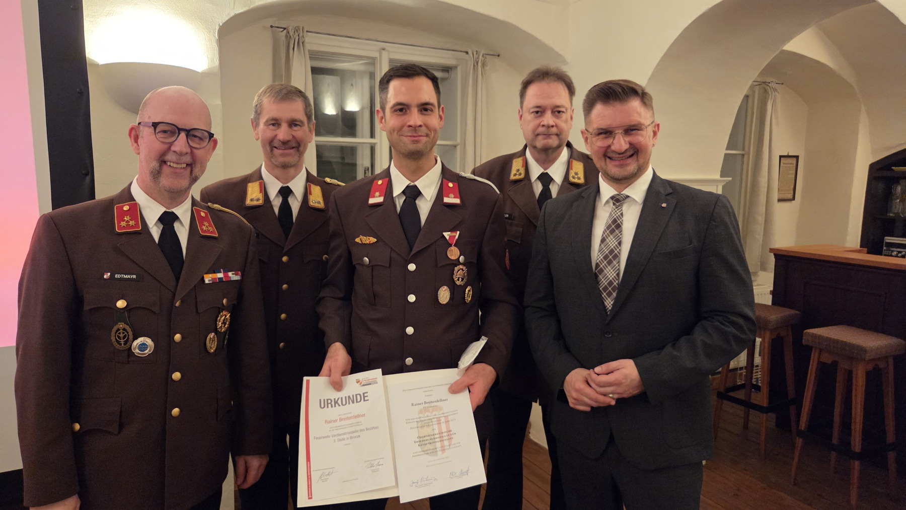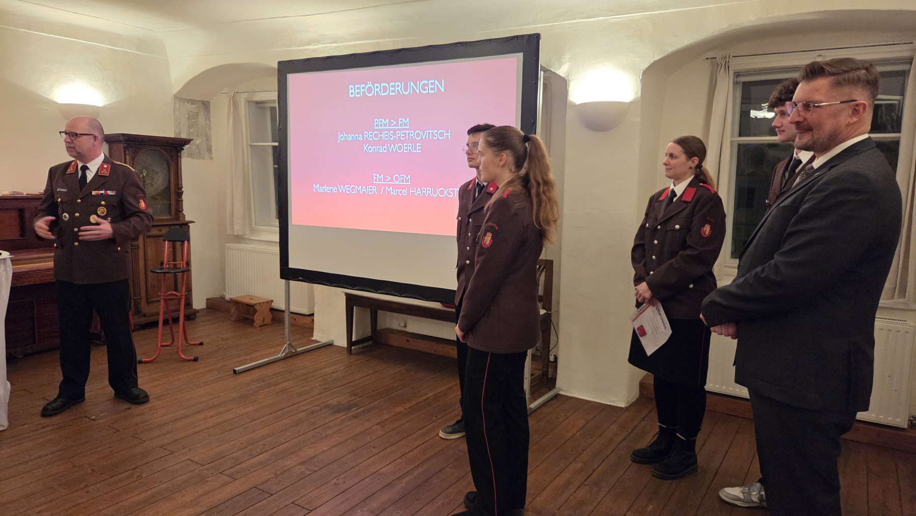 | Beförderungen | Katharina Recheis-Petrovitsch (Feuerwehrmann) Johanna Recheis-Petrovitsch (Feuerwehrmann) Konrad Woerle (Feuerwehrmann) Marcel Harrucksteiner (Oberfeuerwehrmann) Marlene Wegmaier (Oberfeuerwehrmann) Florian Wiesinger (Oberlöschmeister) Rainer Breitenfellner (Oberlöschmeister) Stefan Donabauer (Brandinspektor d. F.) Lorenz Pichler (Hauptbrandmeister) Paul Edtmayr (Oberbrandmeister d. F.) |