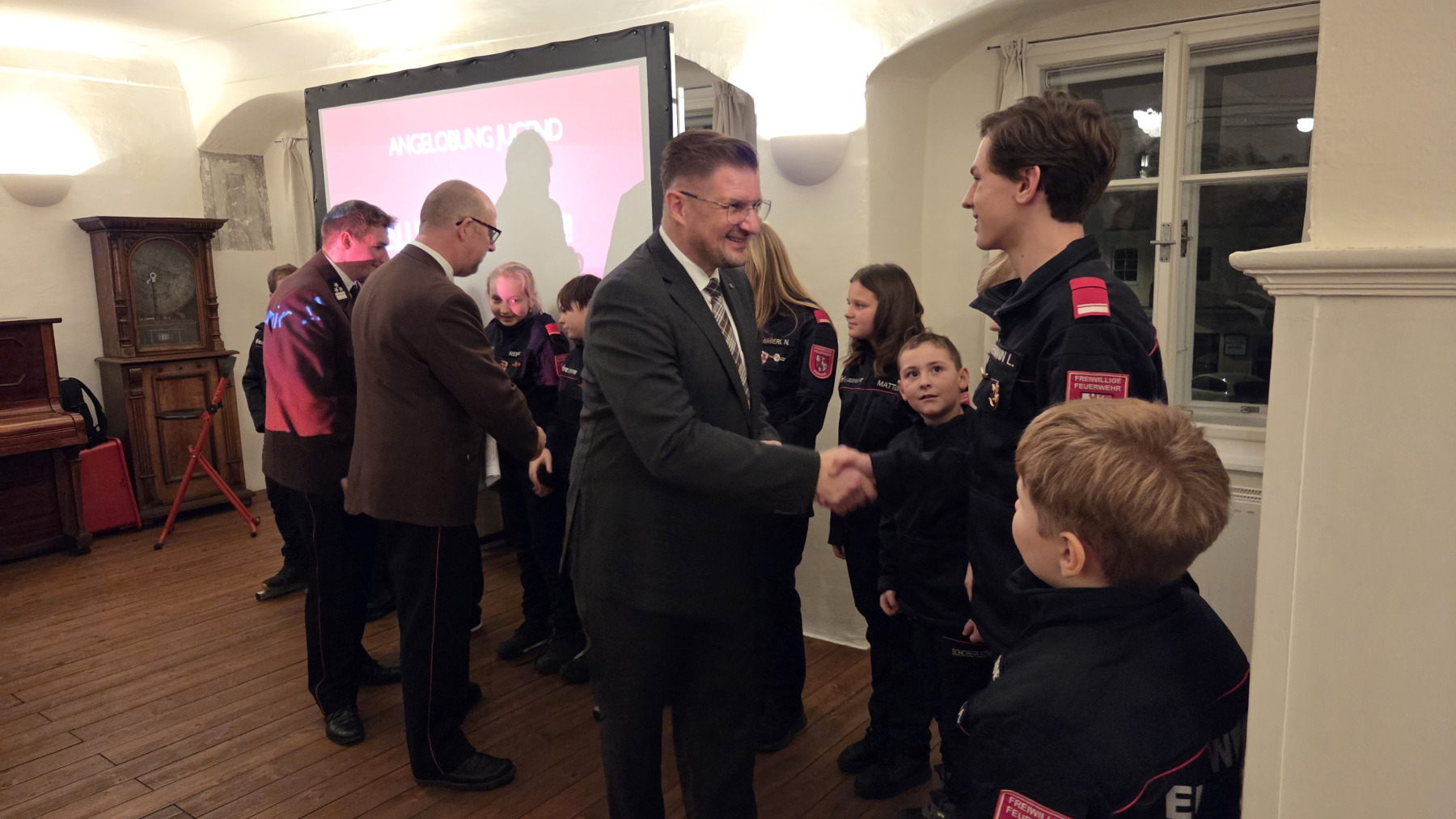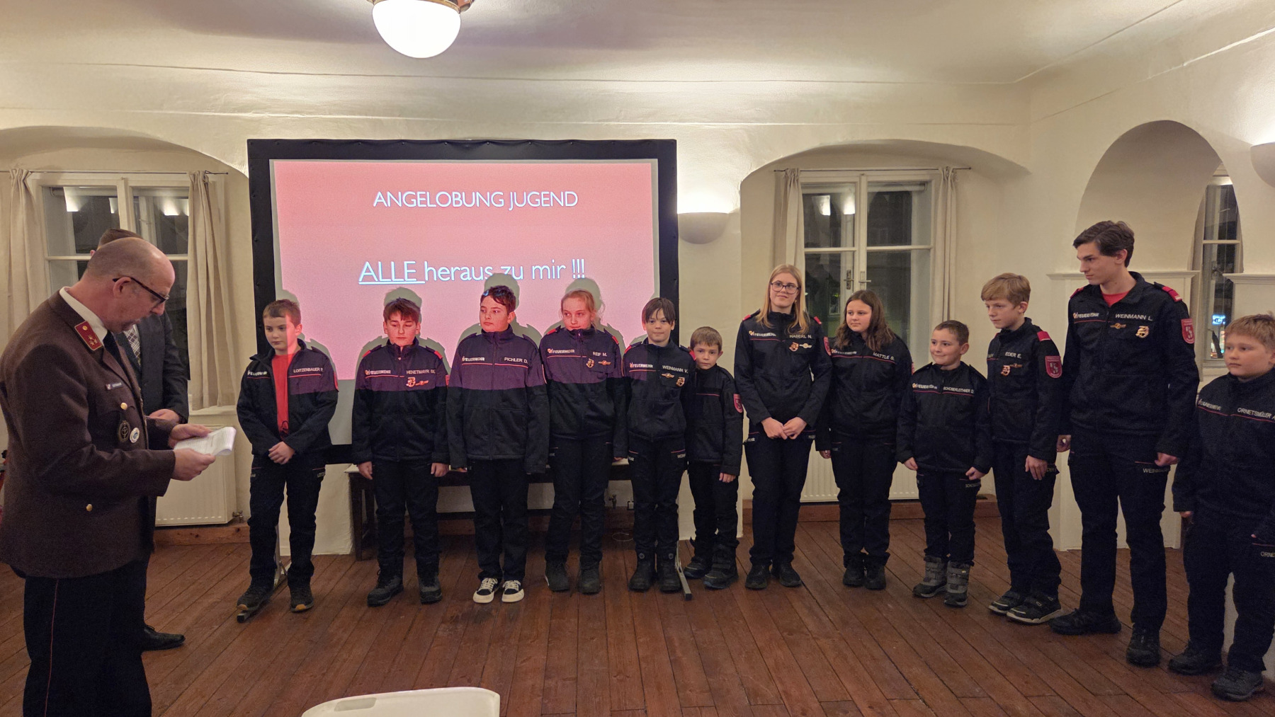 Neben der Angelobung zweier neuer Mitglieder im Aktivstand konnten auch acht neue Jugendfeuerwehrmitglieder begrüßt werden. Außerdem wurde ein neuer Gruppenkommandant ernannt; HBM Lorenz Pichler übernimmt ab sofort die Aufgaben von Zugskommandant BI Valentin Brandl. Er ist nun gemeinsam mit dem zweiten Gruppenkommandanten HBM Karl-Peter Hofbauer für die Ausbildung der aktiven Einsatzkräfte verantwortlich. Weiters wurde OFM Paul Edtmayr als Jugendbetreuer-Helfer zum Oberbrandmeister des Fachdienstes ernannt.