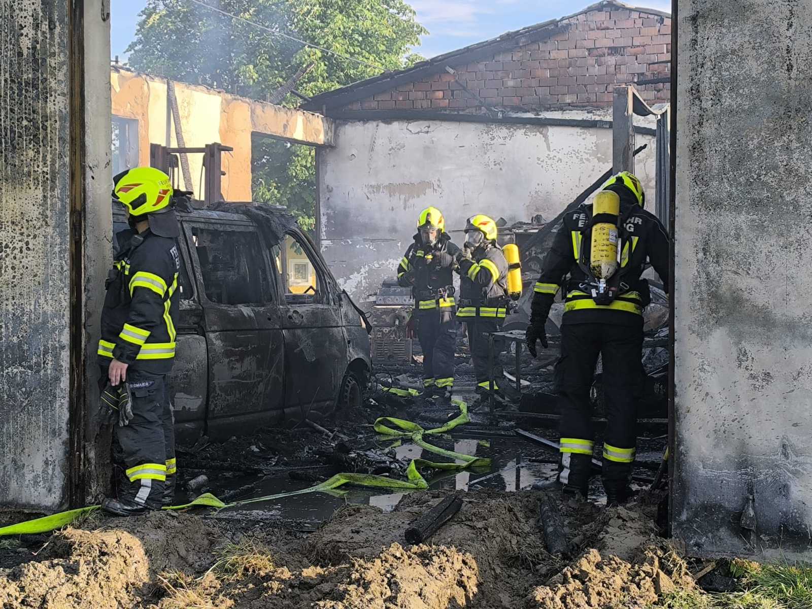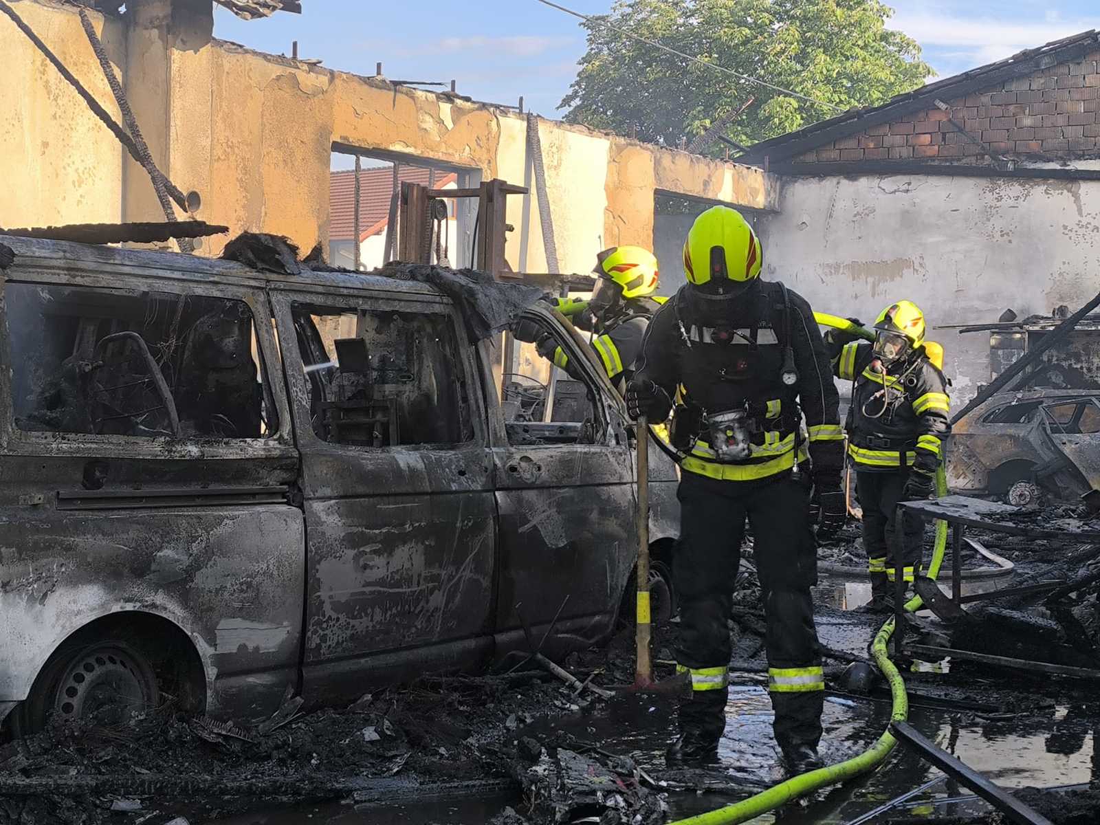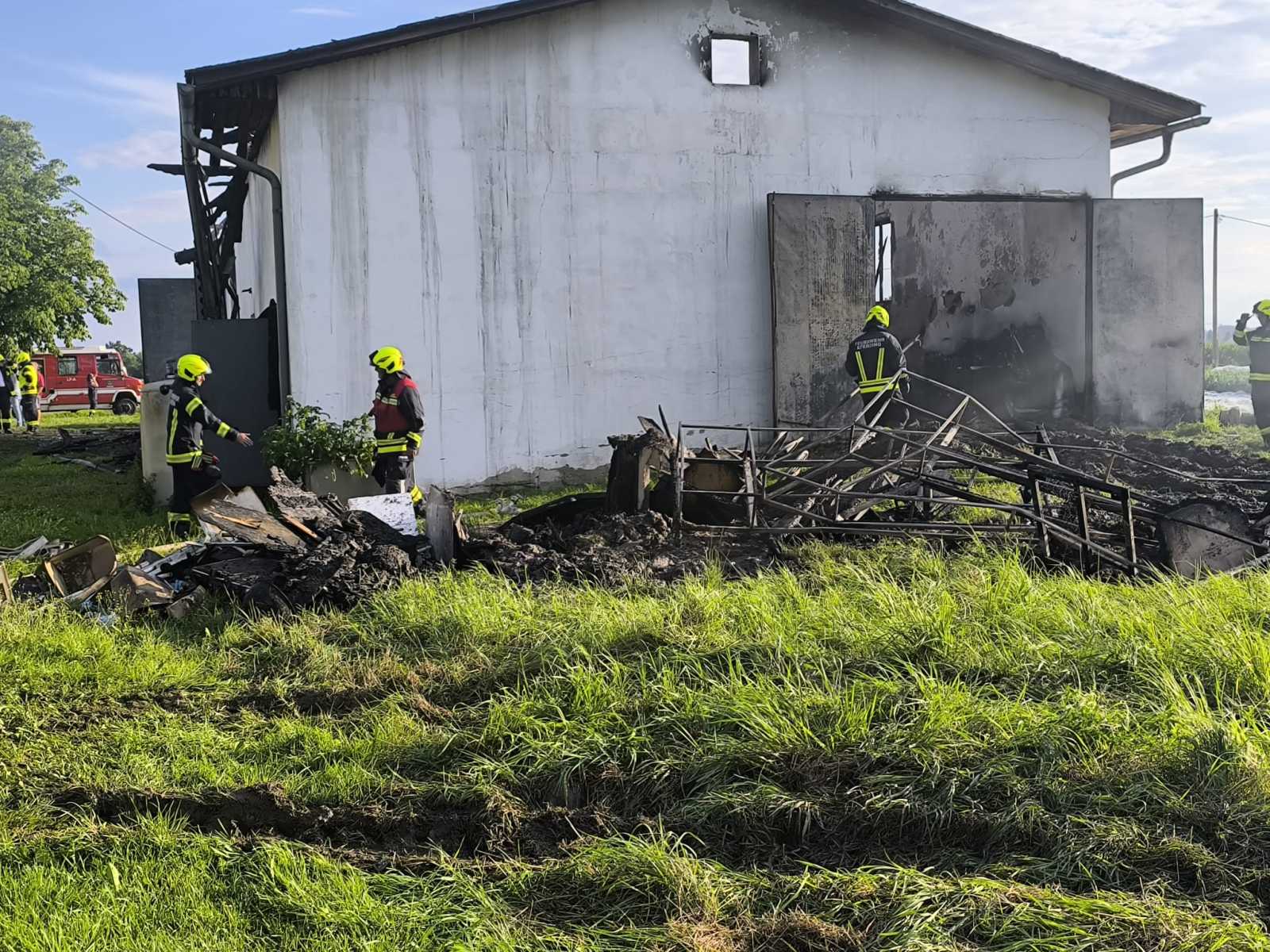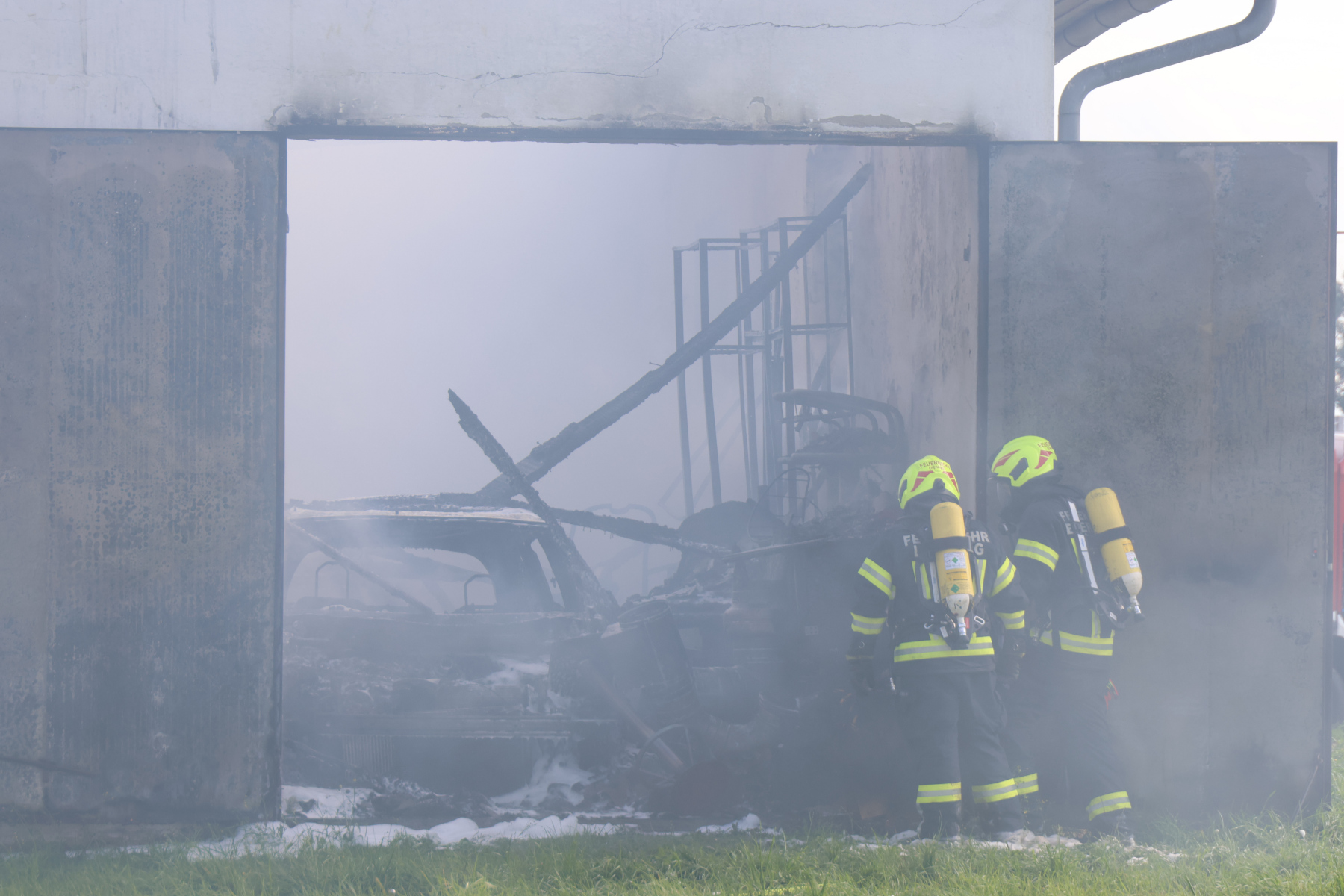 Das Feuer dürfte durch Schweißarbeiten an einem PKW ausgelöst worden sein. In der Halle befanden sich neben vier PKW auch zwei Stapler, die wie die gesamte Halle vollständig abbrannten.