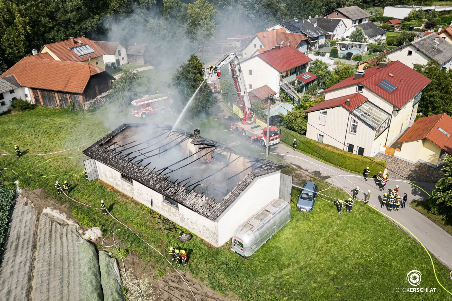 Da bereits auf der Anfahrt eine große Rauchsäule erkennbar war, wurde unmittelbar nach Alarmierung von der Feuerwehr Pupping die Alarmstufe 2 ausgerufen, wodurch neben der FF Eferding auch die FF Hinzenbach alarmiert wurde. Aufgrund der schnellen Ausbreitung der Flammen wurden schließlich auch die Feuerwehren Alkoven und Aschach mit der Teleskopmastbühne (TMB) und dem Atemschutzfahrzeug alarmiert.
