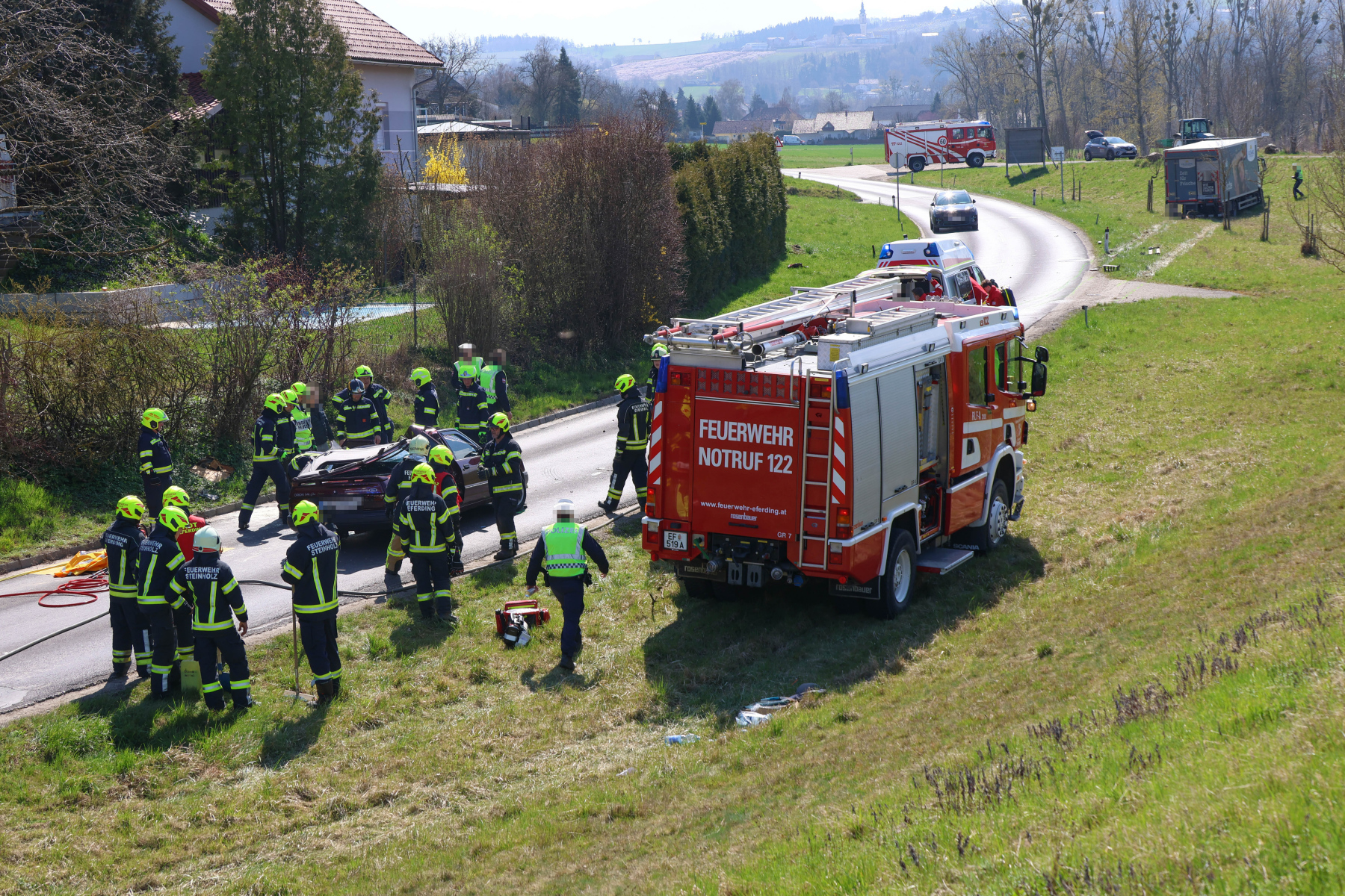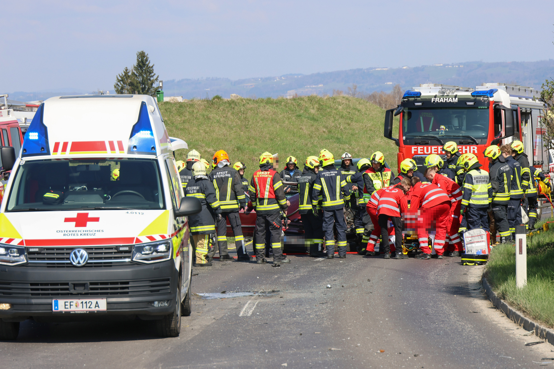 Am Karfreitag wurde die FF Eferding zu Mittag gemeinsam mit den Feuerwehren Fraham und Steinholz zu einem schweren Verkehrsunfall zwischen Fraham und Scharten alarmiert.